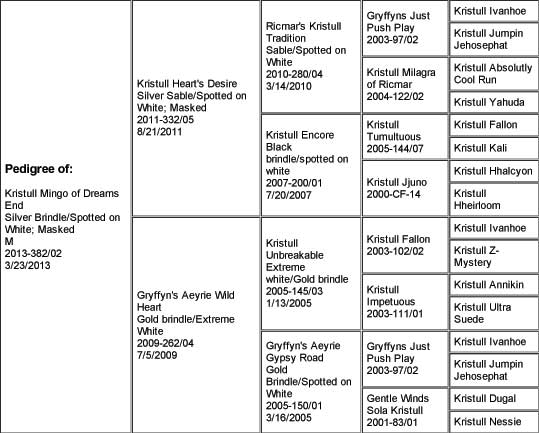 Registered Name: UKC CH' Kristull Mingo of Dreams